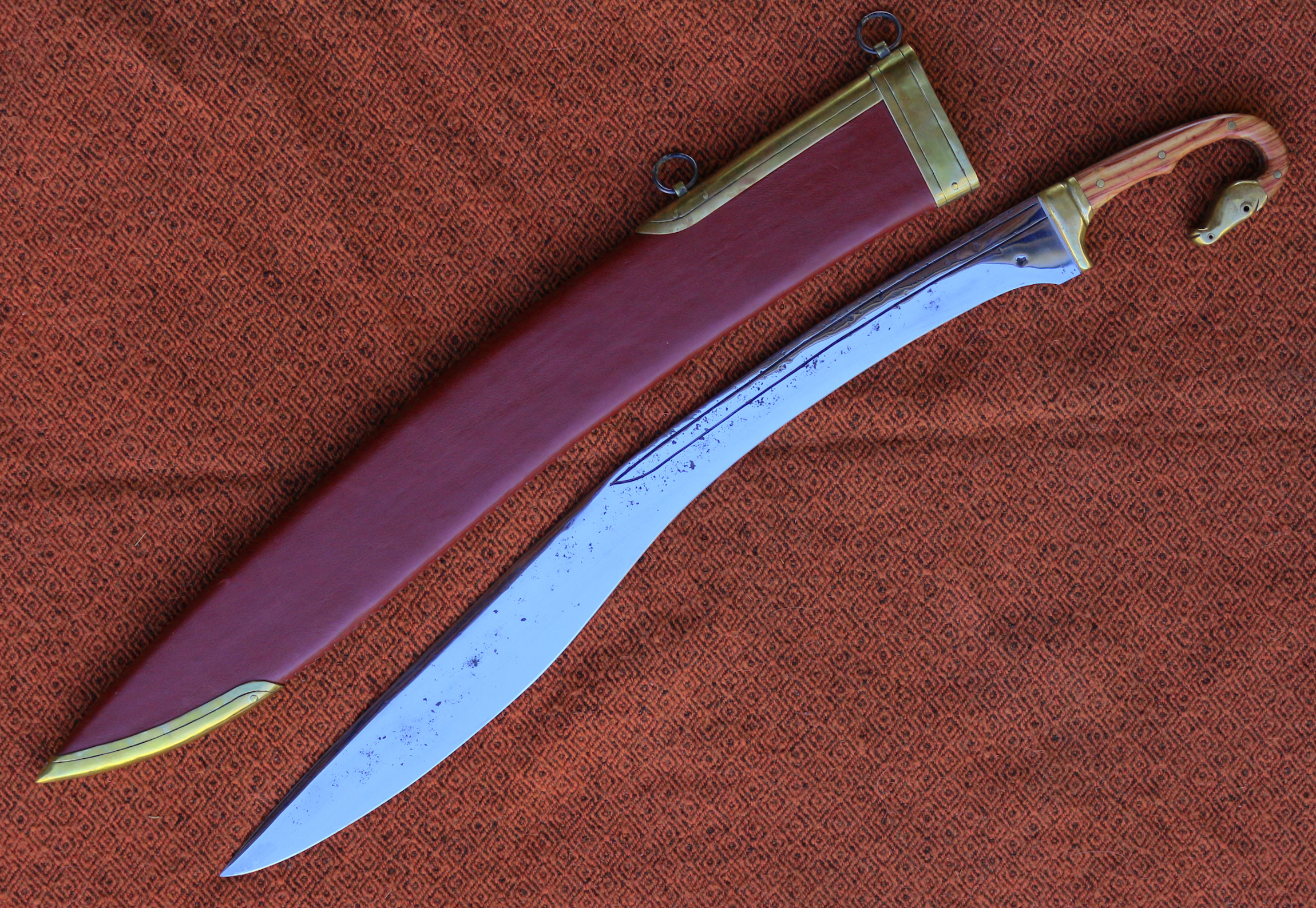 La forme de la lame permet de porter des coups de haut en bas d'une extrême force et la forme de la poignée évite quand à elle de lâcher l'arme.