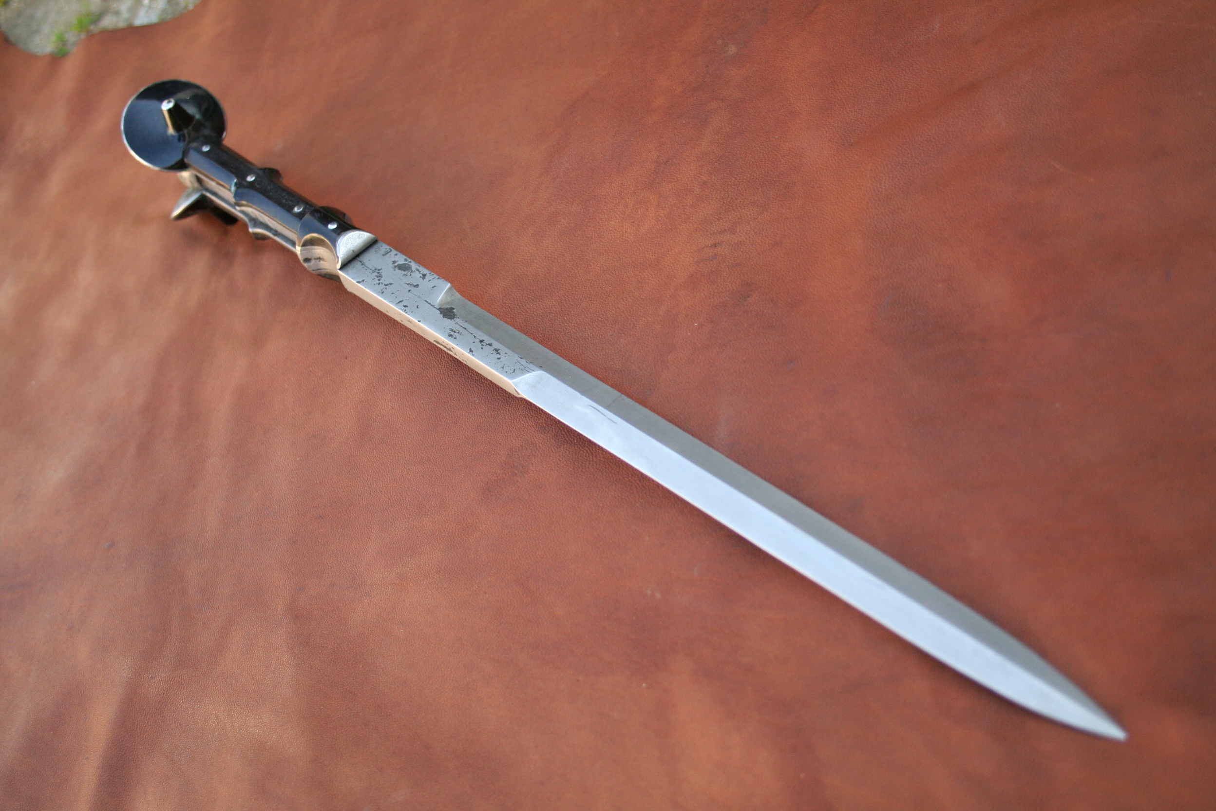 Type d'objet Armes Époque Renaissance Prix indicatif (de janvier 2024) 490 Dague à oreilles forgée entièrement en vieux fer. Plaquettes en corne noire. On peut aussi trouver ce genre de modèle à la fin du XVe.